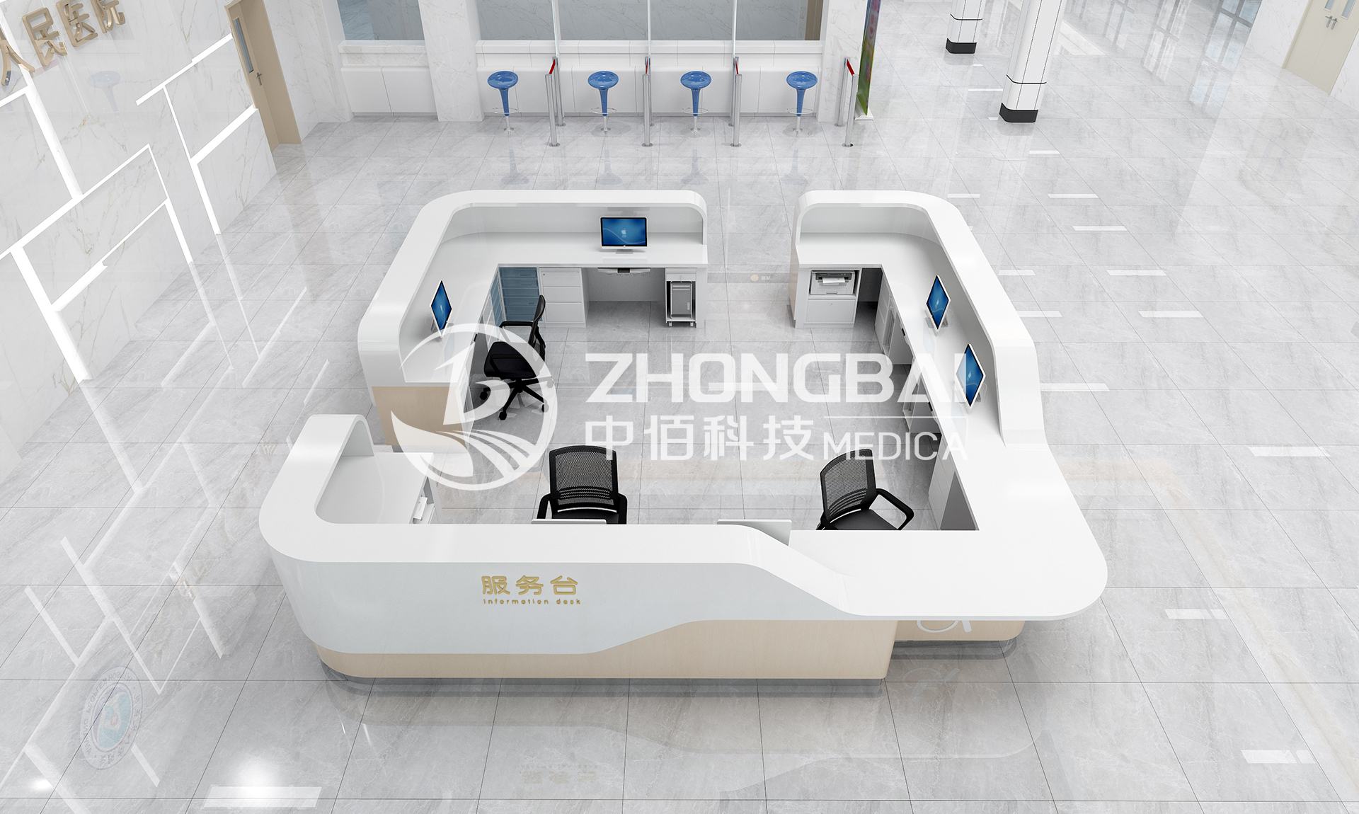 親切優(yōu)雅是設(shè)計(jì)服務(wù)臺的宗旨,力求其與環(huán)境相融合,讓醫(yī)務(wù)工作者及周邊的人群感到踏實(shí)溫暖;設(shè)計(jì)新穎大方、布局合理使用。